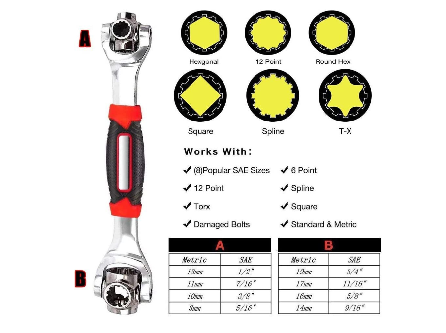 [One Socket Tiger Wrench Tool] - Designul unic revolutionar al dintelui va permite sa efectuati dimensiuni standard si metrice - doar rasturnati unealta si aveti mai multe dimensiuni! Gata cu o cutie de instrumente grea.