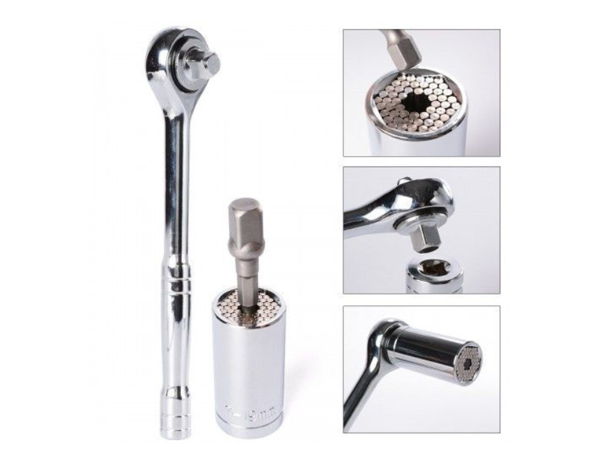 Designul revolutionar se potriveste cu orice element de prindere cu dimensiuni de la 1/4 inch - 3/4 inch, 7-19 mm! Functioneaza excelent pe piulite metrice, standard, piulite sparte, piulite despicate, suruburi cu ochi, piulite patrate, hexuri si multe altele.