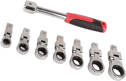 Cheia Combinată Rotativă cu Capete Interschimbabile , un instrument ingenios și versatil care vă permite să lucrați cu o gamă variată de mărimi, de la 8mm până la 19mm, într-un singur instrument.