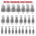 Varietate Ampla: Setul conține 25 de extractoare, fiecare cu specificații clar indicate, inclusiv dimensiuni precum: 1/8", 5/16", 3/8", 7/16", 1/4", 1/2" și multe altele. Acesta este ideal pentru o gamă largă de aplicații, fiind compatibil cu burghie electrice, chei plate și hexagonale, precum și adaptoare pentru robinete.