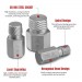Design Avansat: Extractoarele sunt echipate cu filet invers, pentru o extracție eficientă și rapidă. Capul hexagonal permite aplicarea unui cuplu maxim, utilizând atât priza, cât și cheia. De asemenea, extractoarele sunt gravate cu dimensiunile lor pentru o identificare rapidă și precisă.