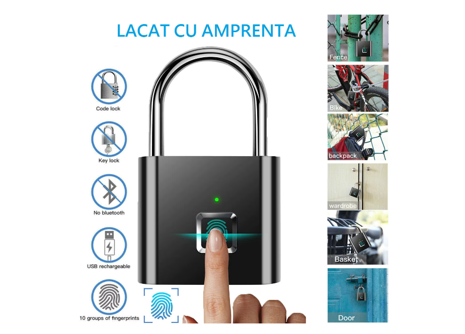 Astfel, nu mai este nevoie să ne facem griji cu privire la pierderea cheilor sau la memorarea codurilor PIN.Securitatea este un aspect esențial al acestui lacat smart. Senzorul de amprentă utilizează tehnologie avansată pentru a identifica și verifica amprenta digitală într-un mod precis și sigur. Datele de amprentă sunt criptate și stocate în interiorul lacatului, asigurând confidențialitatea și protecția informațiilor noastre personale.