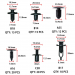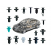 Setul contine elemente de diferite marimi si sisteme de prindere, clipsuri, cleme plastic pentru prindere interior sau exterior, universale auto sau moto, recomandate pentru reparatia tapiteriei, plafoanelor, fetelor de usi, prinderea carenajului sau a diverselor ornamente etc.
