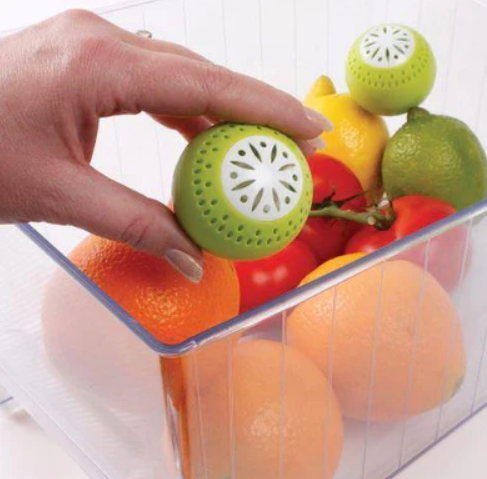 Cu totii ne dorim sa mancam fructe si legume proaspete in fiecare zi fara a fi nevoie sa mergem des la magazin. Nu v-ar placea ca fructele si legumele sa ramana proaspete pentru o perioada de 3 ori mai lunga? Nu trebuie decat sa plasati cele trei bile in frigider, iar acestea vor absorbi automat gazele eliberate de alimentele proaspete si le vor ajuta sa ramana proaspete.- bile pentru indepartarea mirosurilor din frigider