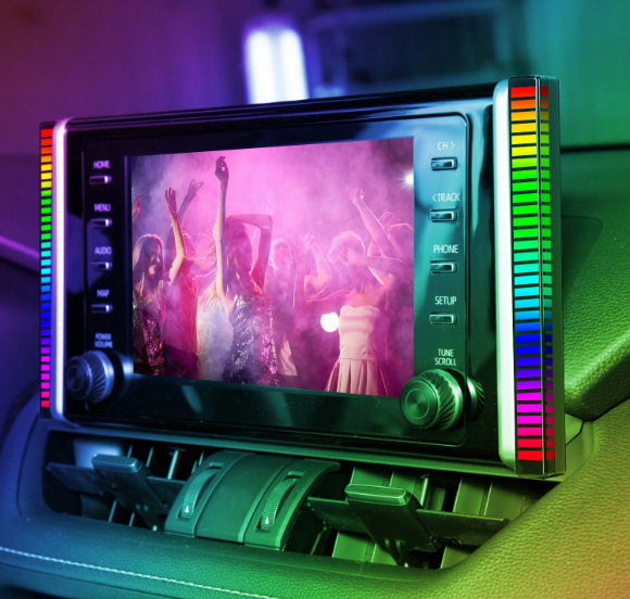 Bara luminoasa RGB cu 32 de leduri are un microfon sensibil care poate fi ajustat pentru captarea sunetului. Exista o multime de moduri prin care va puteti customiza bara datorita aplicatiei dedicate care se poate instala scanand codul QR de pe spatele dispozitivului.