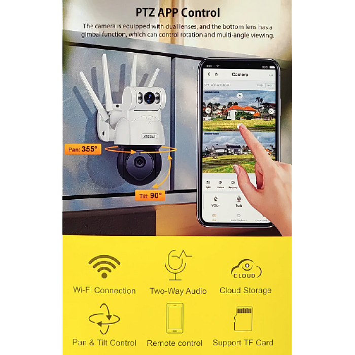 Funcția PTZ (Pan-Tilt-Zoom) este o altă caracteristică impresionantă a acestei camere. Cu această funcție, puteți mări sau micșora zona dorită și puteți roti camera atât vertical, cât și orizontal, pentru a obține unghiurile potrivite și vizualizarea optimă. Acest lucru vă oferă un control sporit asupra ceea ce se întâmplă în jurul camerei.