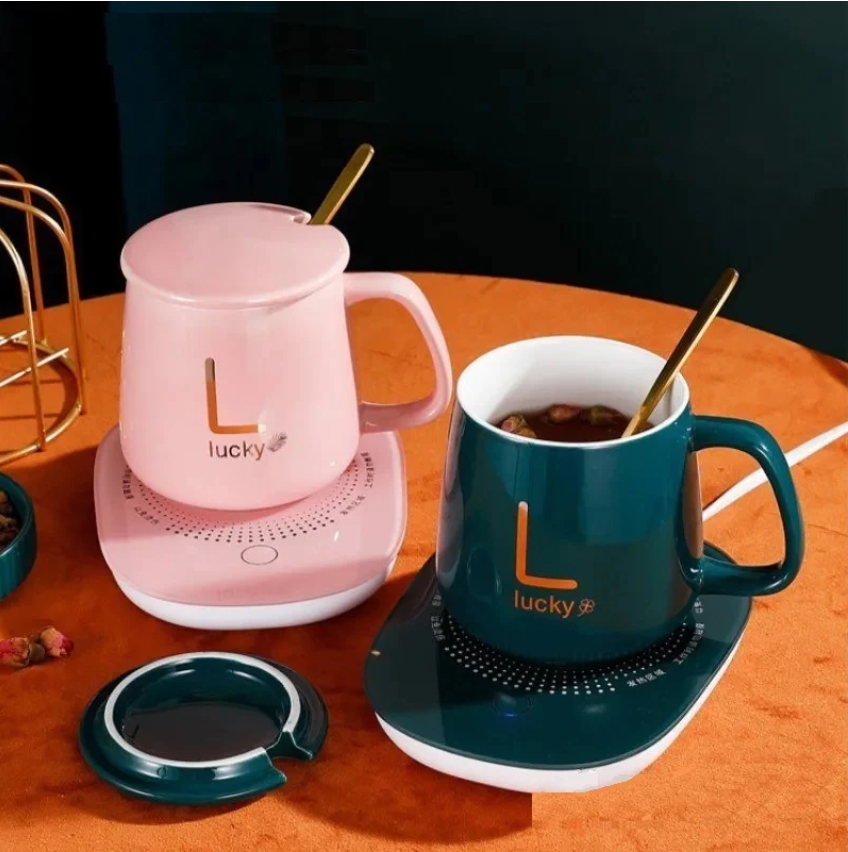 Cana ceramica cu lingurita, incalzitor, temperatura constanta 55 grade, 220V, 400 ml