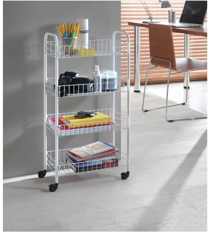 Cărucior mobil, pentru baie si bucatarie, dotat cu 4 rafturi