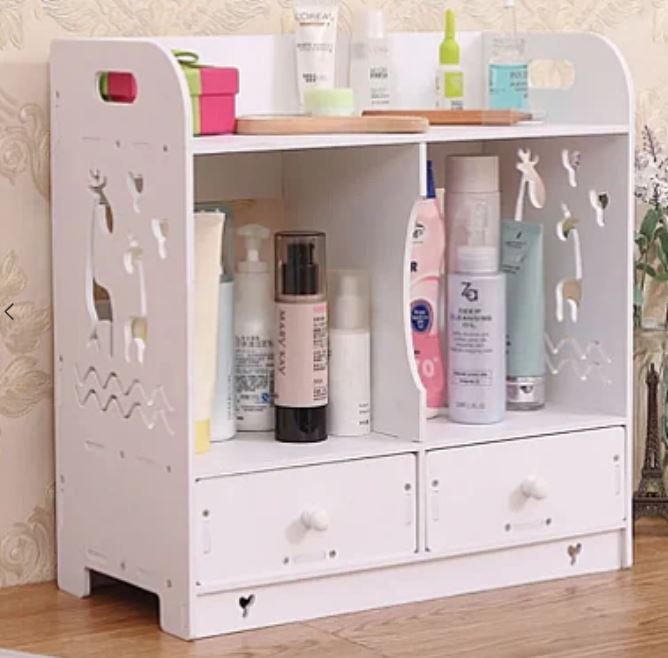 Cutie de depozitare cosmetice cu 2 sertare Alb