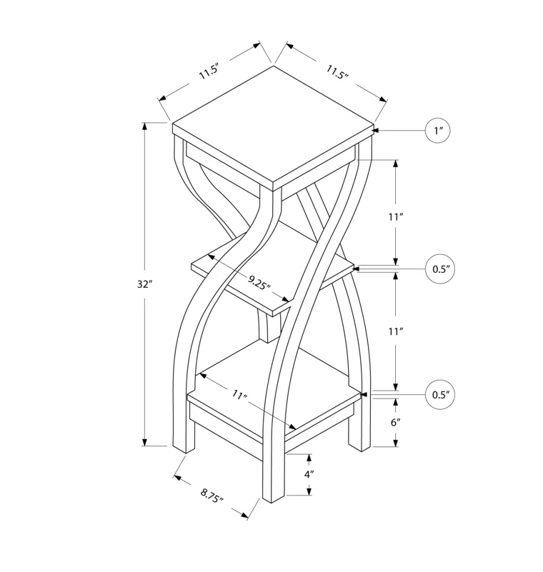 Cu dimensiunile de 85 x 30 cm, etajera este compacta si potrivita pentru a fi amplasata în spatii mai restrânse, cum ar fi colturile camerei sau spatiile mici dintre alte piese de mobilier.