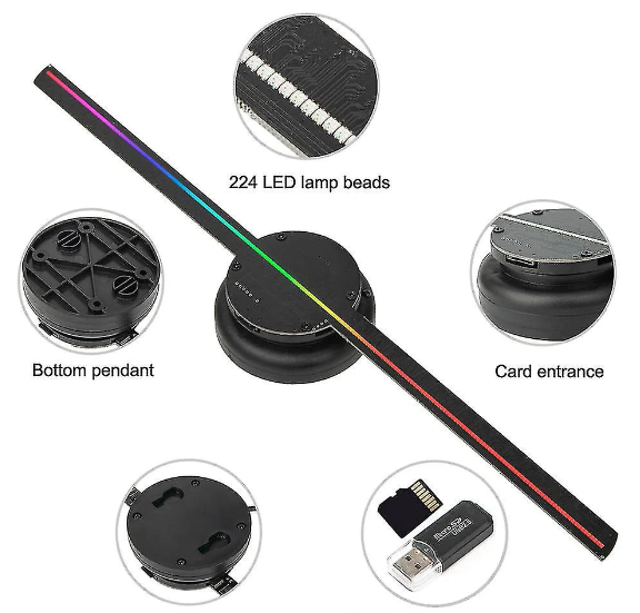 Specificatii Proiector holograma tip ventilator, control wireless, 3D cu LED-uri: