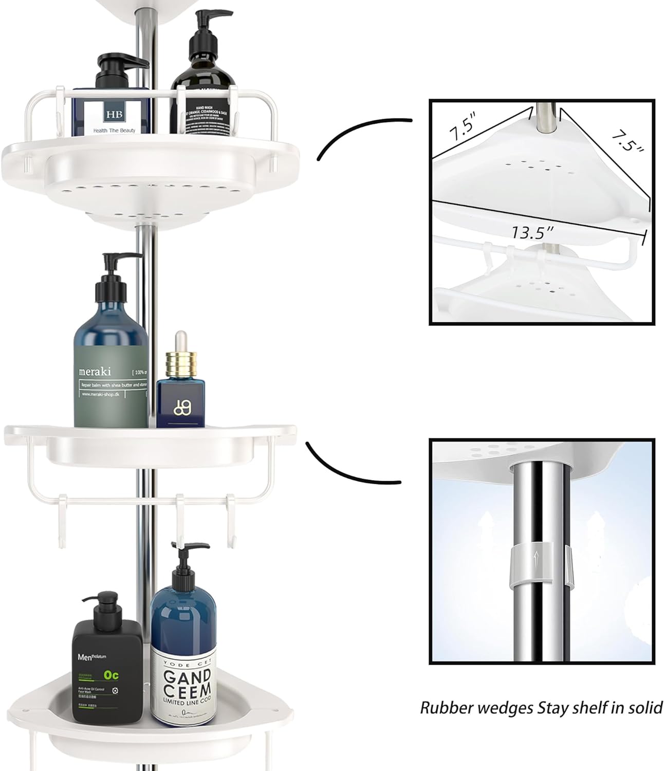 Etajera colt pentru baie si dus, 4 rafturi, inaltime reglabila 320cm, montare pe colt