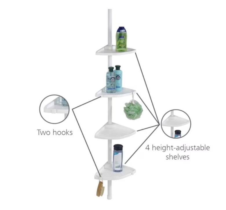Etajera colt pentru baie si dus, 4 rafturi, inaltime reglabila, montare pe colt BricoMall BM-ETJ4R