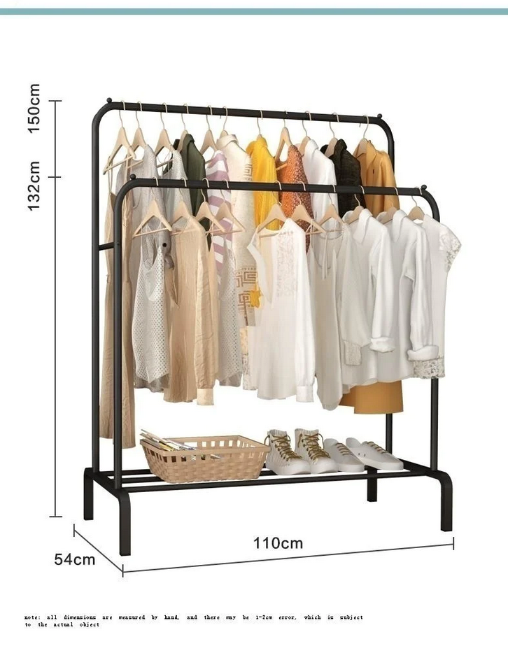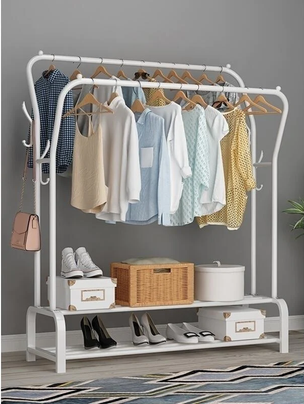 Suportul perfect pentru haine va poate satisface nevoile zilnice. Doua sine pentru haine pot gazdui dublul cantitatii de haine, iar partea de jos are un suport de pantofi cu doua straturi pentru pantofi si cutii de pantofi.