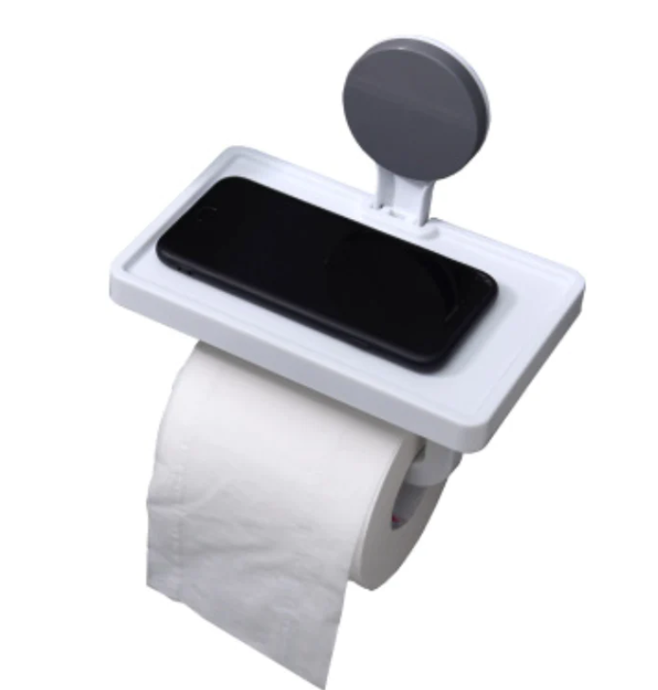 - Acest suport pentru hartie igienica cu raft se fixeaza fara gauri sau alte unelte.