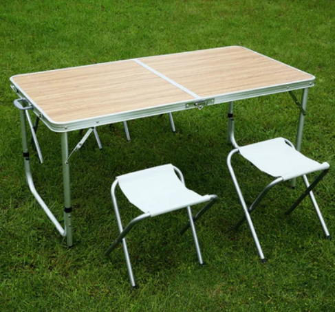 Setul pentru camping este format dintr-o masa pliabila cu maner si 4 scaunele pliabile. Setul este ideal pentru a fi folosit pe terasa, in gradina sau in camping. Masa este foarte practica intrucat are un maner si inaltimea este reglabila. Are un cadru usor. Manerul faciliteaza transportarea atunci cand mergeti la picnic sau cand campati.