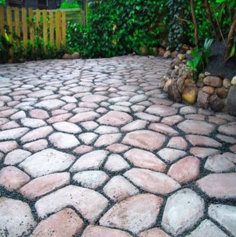 Este perfect pentru carari, gradini si parcari. Matrita se toarna deasupra cu un mortar semi-uscat, apoi mortarul se intinde peste matrita cu o mistrie pentru a elimina excesul. Aranjamente interesante pot fi create prin utilizarea diferitelor culori de pigmenti la colorarea betonului. Datorita unei baze comune de beton, pavajul nu se va prabusi, cuburile nu se vor misca si iarba din goluri nu va creste.