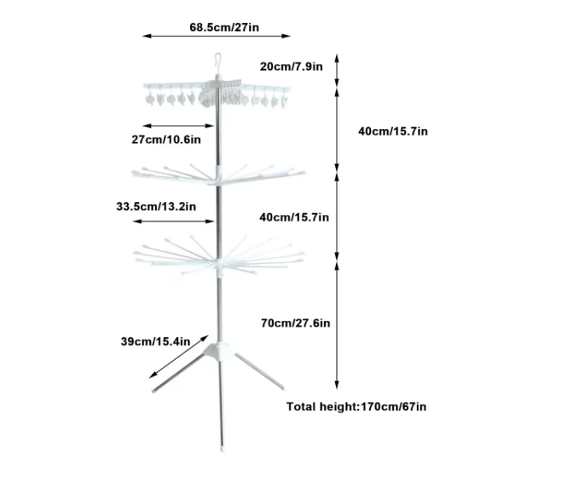 Trei etaje cu carlige pentru o varietate de optiuni de uscare