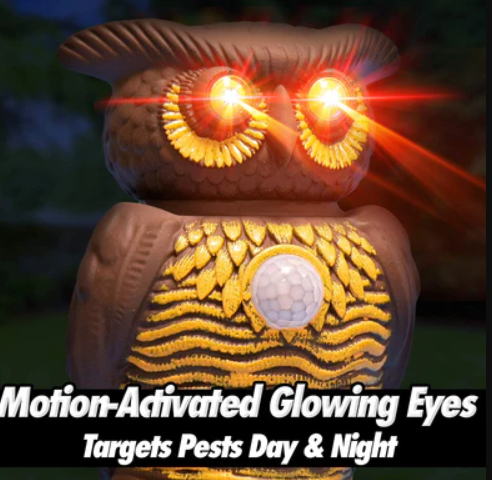 Poate fi folosit si ca element decorativ pentru orice loc ! Owl Alert protejeaza de pasari si alti daunatori curtile, terasele, balcoanele, gradinile, acoperisurile, depozitele, fermele, zone comerciale si industriale, culturile agricole sau orice alta locatie unde isi fac simtita prezenta daunatorii. Secretul consta in combinatia dintre senzorul de miscare, care la activare face ca aparatul sa emita ultrasunete si ochii bufnitei care se aprind intr-o nuanta de rosu intens. Cand este detectata o miscare, ochii bufnitei se aprind rosu si emite sunete ultrasonice care vizeaza daunatorii. Sunetul poate fi auzit doar de animale, nu de oameni si este o modalitate excelenta de a descuraja daunatorii fara a utiliza substante chimice sau pesticide. Bufnita rezistenta si rezistenta la intemperii functioneaza zi si noapte si nu va dauna animalelor!