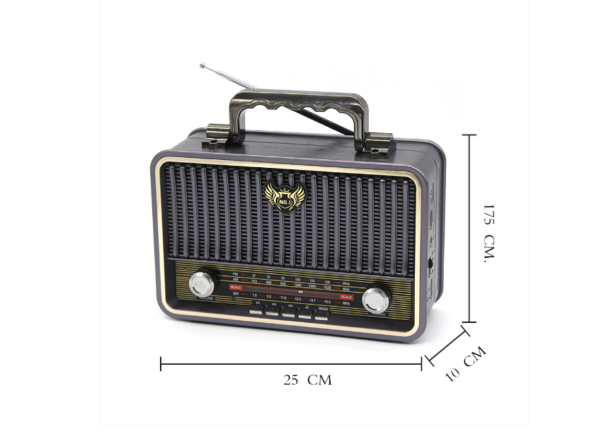 Este un aparat radio portabil cu mp3 player incorporat. Integreaza in acelasi dispozitiv un aparat de radio ce functioneaza pe frecventele FM, AM si SW si un MP3 player ce poate reda muzica de pe telefon, card microSD/TF sau orice dispozitiv conectat prin Bluetooth sau USB.