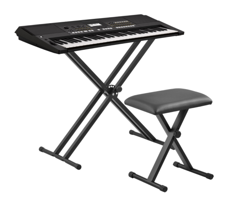 Scaunul pentru pian tapitat este comod si are inaltimea reglabila, astfel asigura sederea ideala in timp ce performati la instrumentul dumnevastra cu clape.Suportul pentru claviatura sustinere dubla, este ideal pentru pianele portabile, sintetizatoare,console mixare, tastaturi midi si master. Asigura o tinuta stabila si poate fi pliat complet astfel economisand spatiu. In plus, atat inaltimea cat si latimea pot si schimbate si ajustate dupa cum doriti.