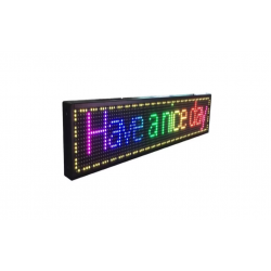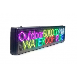 Este conceputa pentru utilizarea in spatii EXTERIOARE, se monteaza foarte usor prin fixare pe perete. Textul se poate personaliza in functie de preferinte, mesajele sunt afisate sub diferite fonturi, embleme. Totodata se poate regla intensitatea, viteza de redare a mesajului cat si efectele speciale.