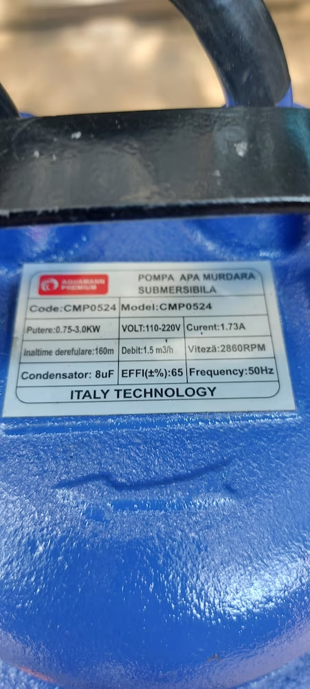 - Plutitorul / Flotorul opreste automat funtionarea pompei in functie de nivelul apei.